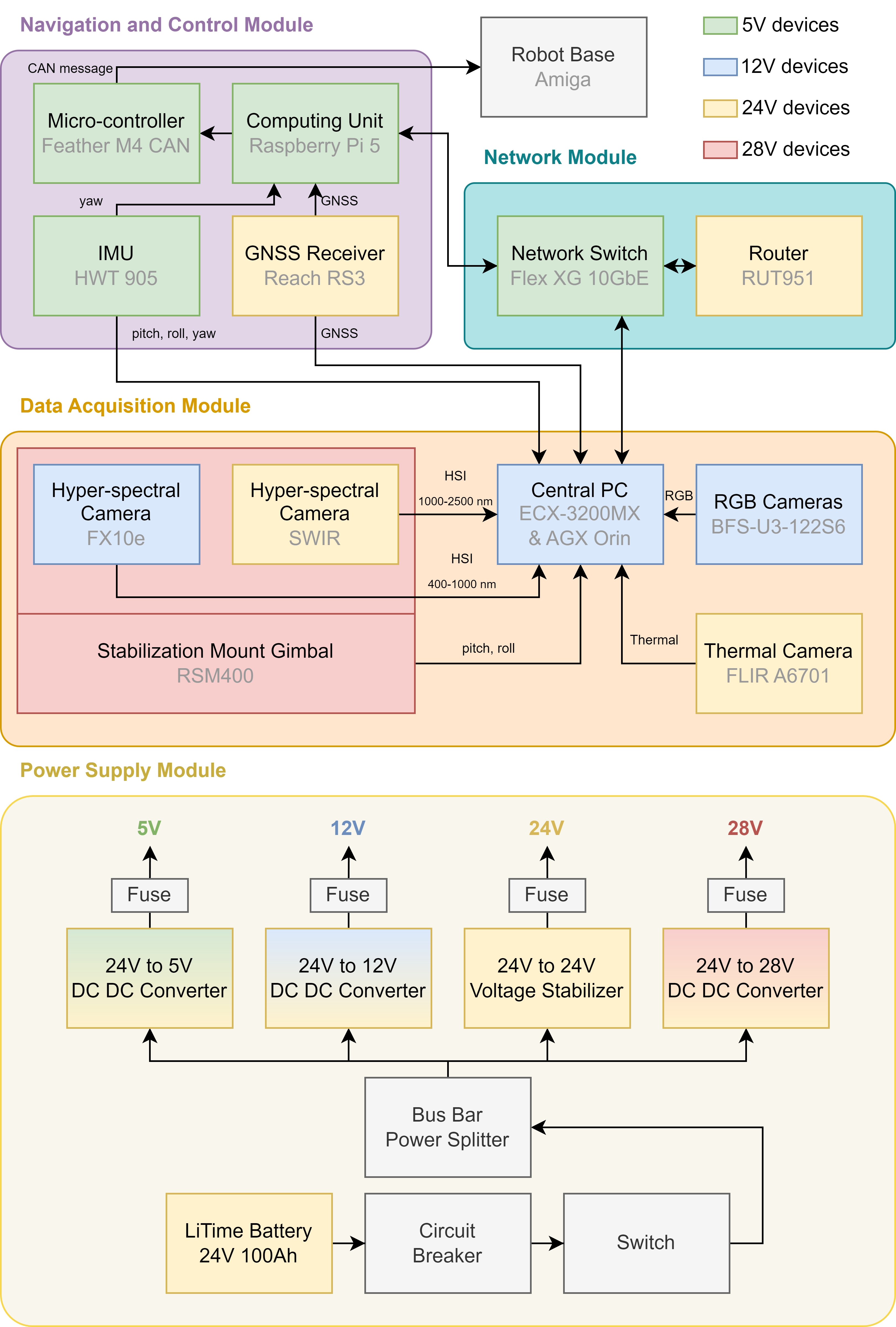 - RTK-GPS and IMU for autonomous navigation and accurate geo-referencing of all collected imagery